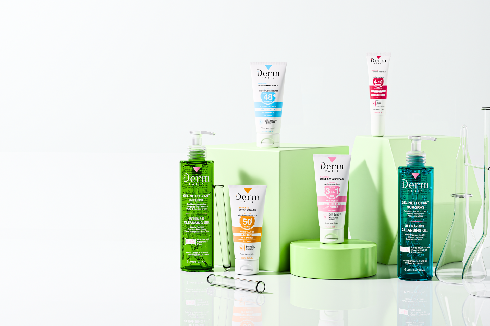 Chaque formule agit avec précision : purifier, corriger, hydrater, illuminer et protéger.